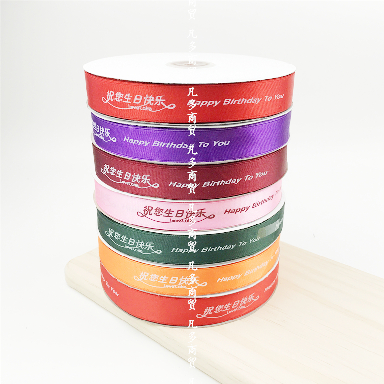 2cm Printed Happy Birthday Ribbon Baking Cake Box Rope Cloth Ribbon Birthday Cake Packaging Cable Ties