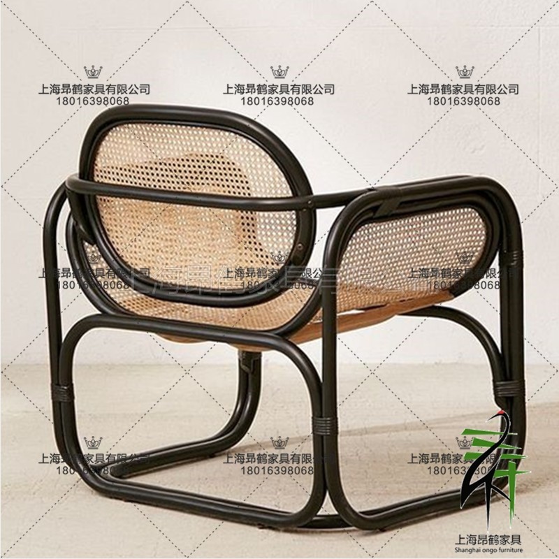 Neoclassical rattan leisure single chair designer rattan sofa retro cafe model room engineering chair