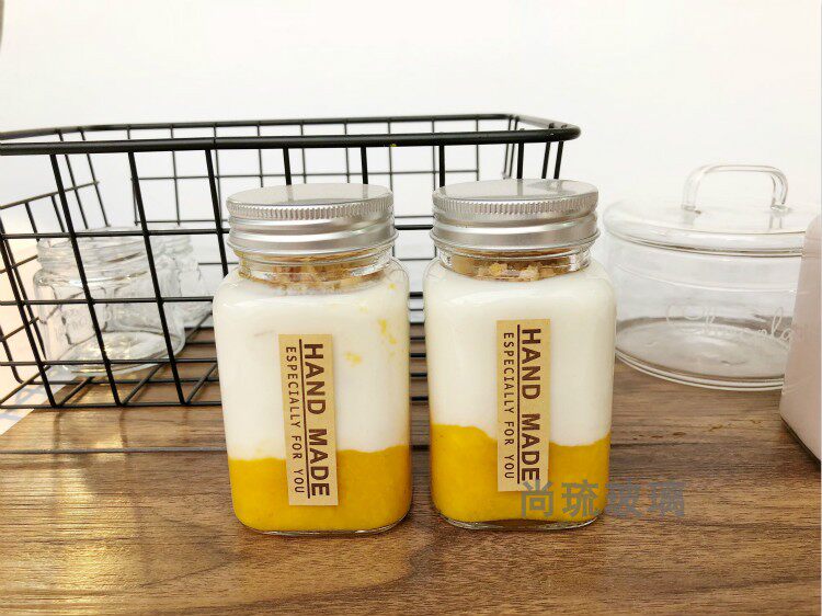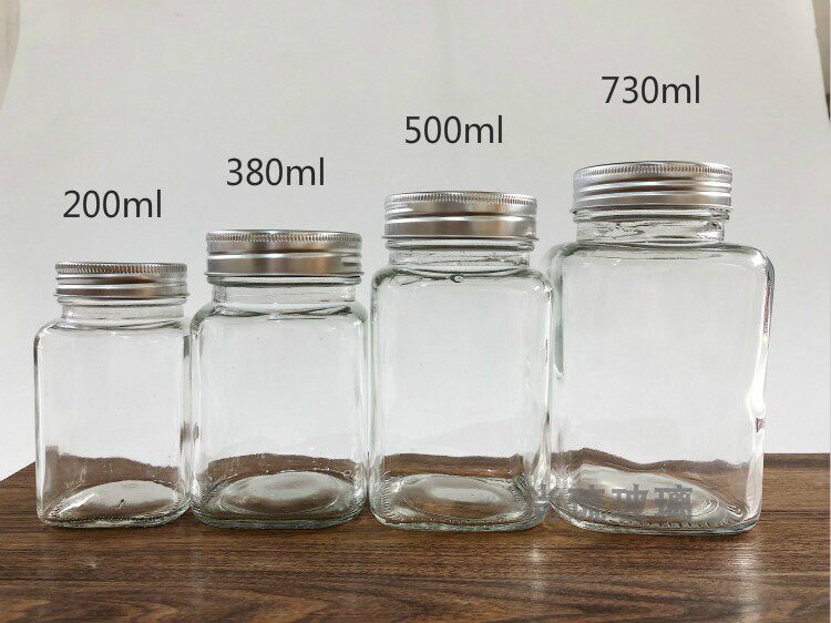 Sealed Honey Glass Bottle Beverage Bottle Jam Bottle Lemon Paste Sauce Vegetable Jar Head Bottle Square Ferment Cereal Storage Jar