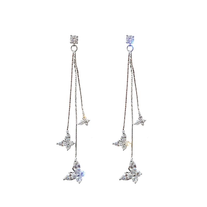 2019 new 925 pure silver needle luxurious super shiny butterfly zircons earrings female temperament South Korea long version ear pin earrings