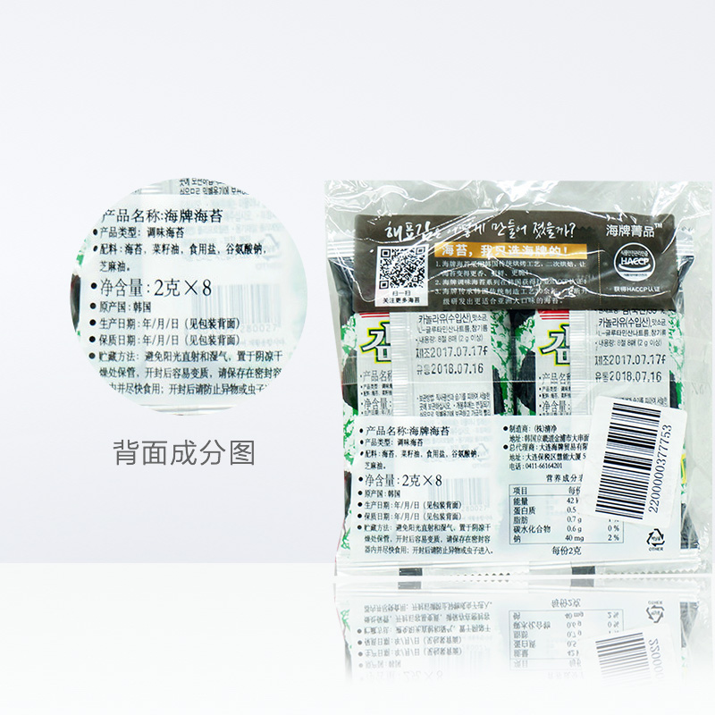 Hai brand South Korea imported ready-to-eat seaweed kimbap seaweed slices roasted seaweed non-fried charcoal grilled snacks spree