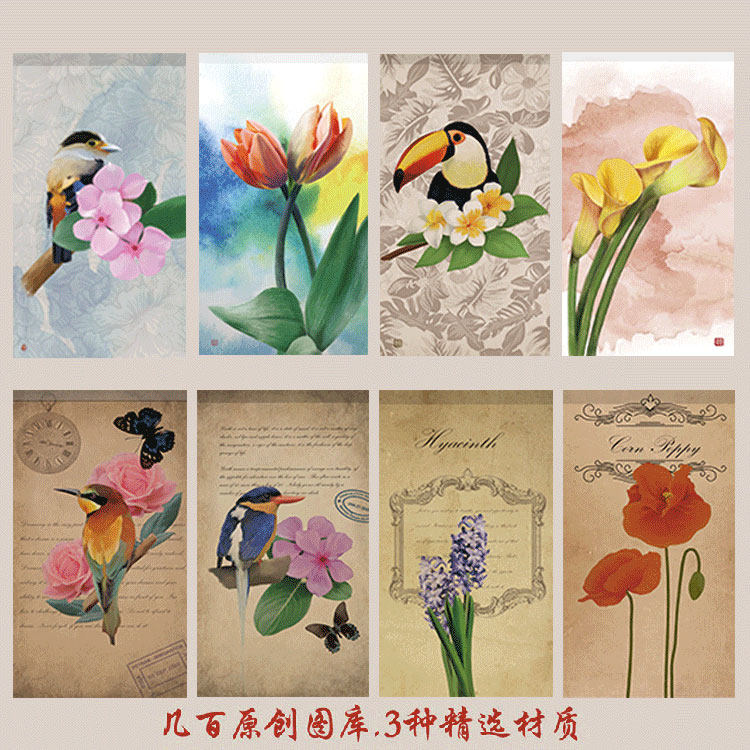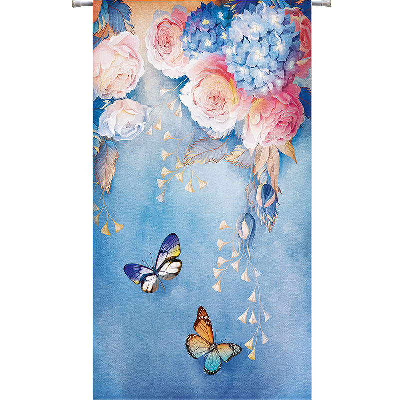 High-end customized Chinese flower bird cotton hemp cloth art door curtain partition hanging curtain bedroom living room decorative curtain