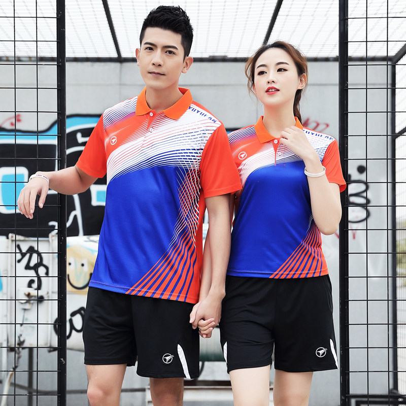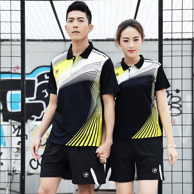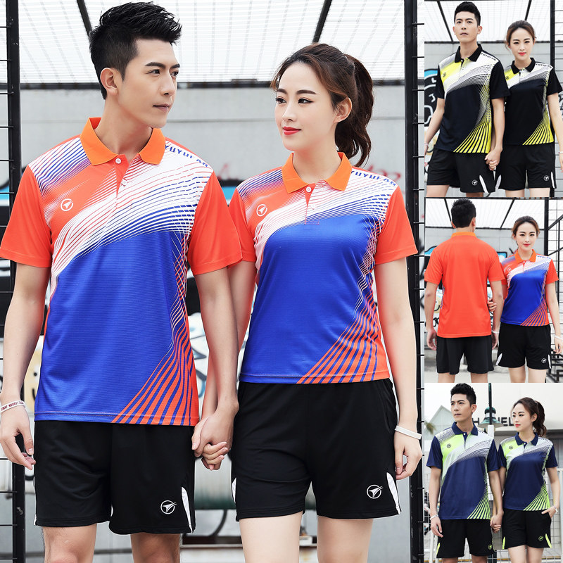 Quick-drying badminton suits men's suits women's sports short-sleeved lapel volleyball tennis half-sleeve training ball clothes summer