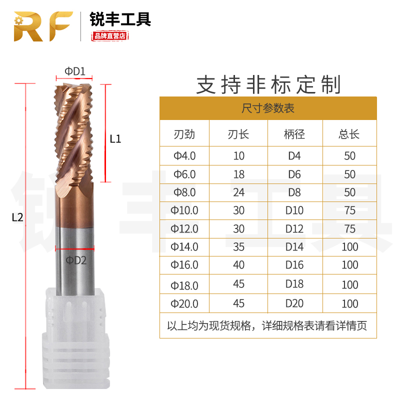 Taiwan RF aluminum with coating 55 degrees tungsten steel alloy rough corrugated corn open rough end mill 4 6 8 10 12