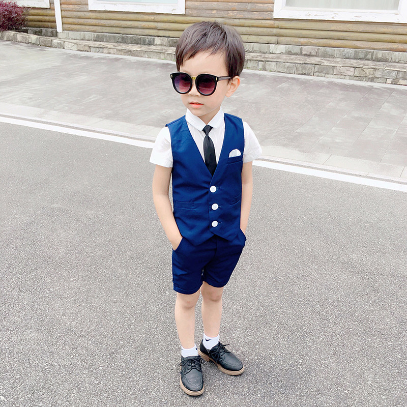 Boy's dress suit British style summer children's host clothing male flower boy small suit suit suit suit three sets