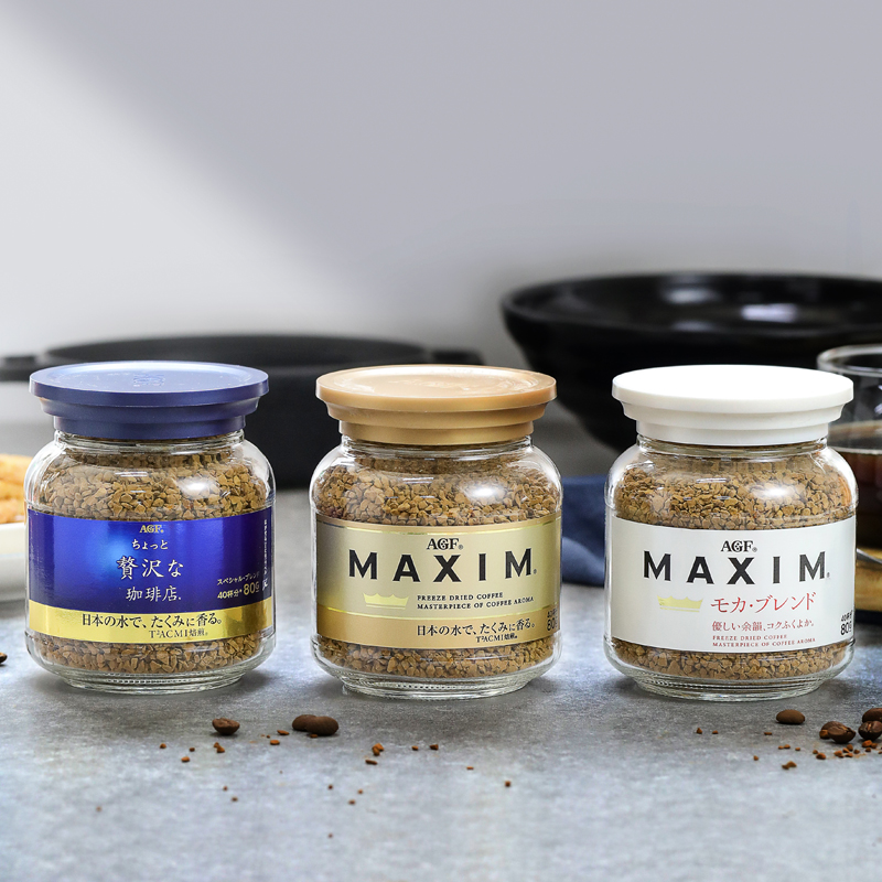 Japan imported AGF maxim Maxim instant pure black coffee powder 80g blue can gold can