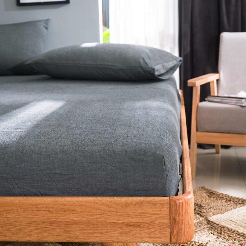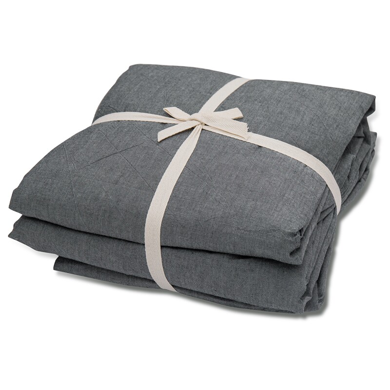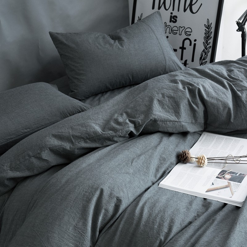 Japanese-style hotel solid color unprinted pure cotton washed cotton four-piece set Dark gray dark black double duvet cover 1 8 bed sheet