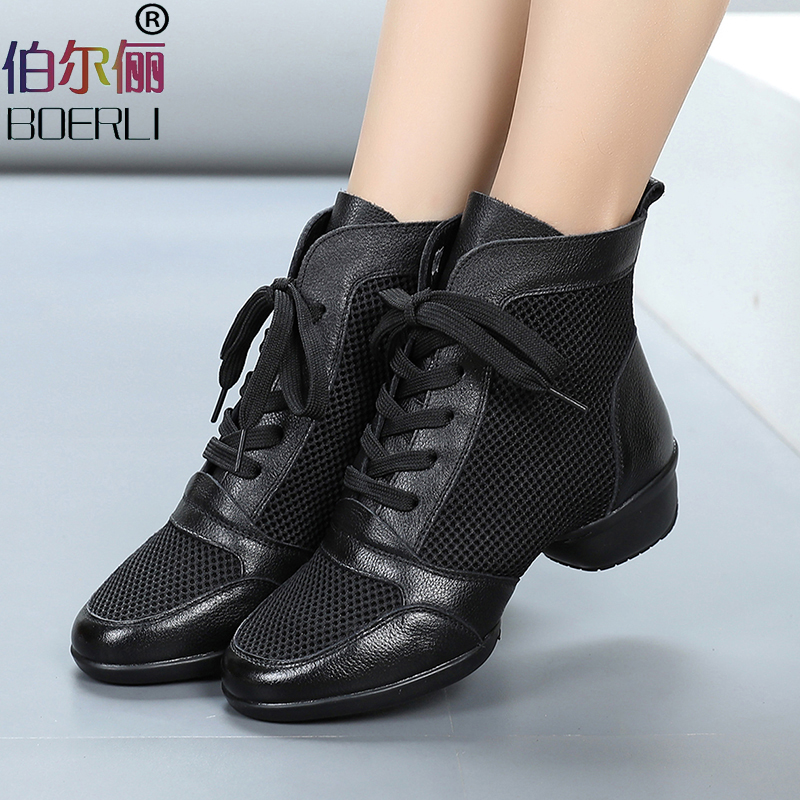 Burleigh spring and summer square dance shoes mesh sailor dance shoes women's leather soft bottom breathable middle heel dance shoes