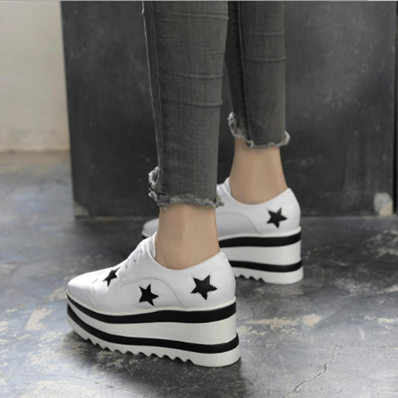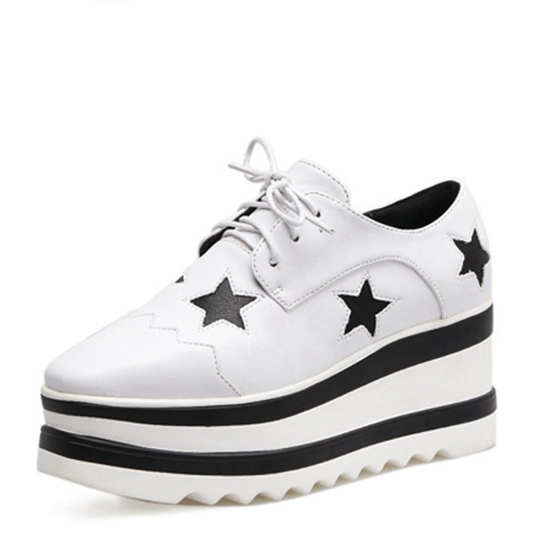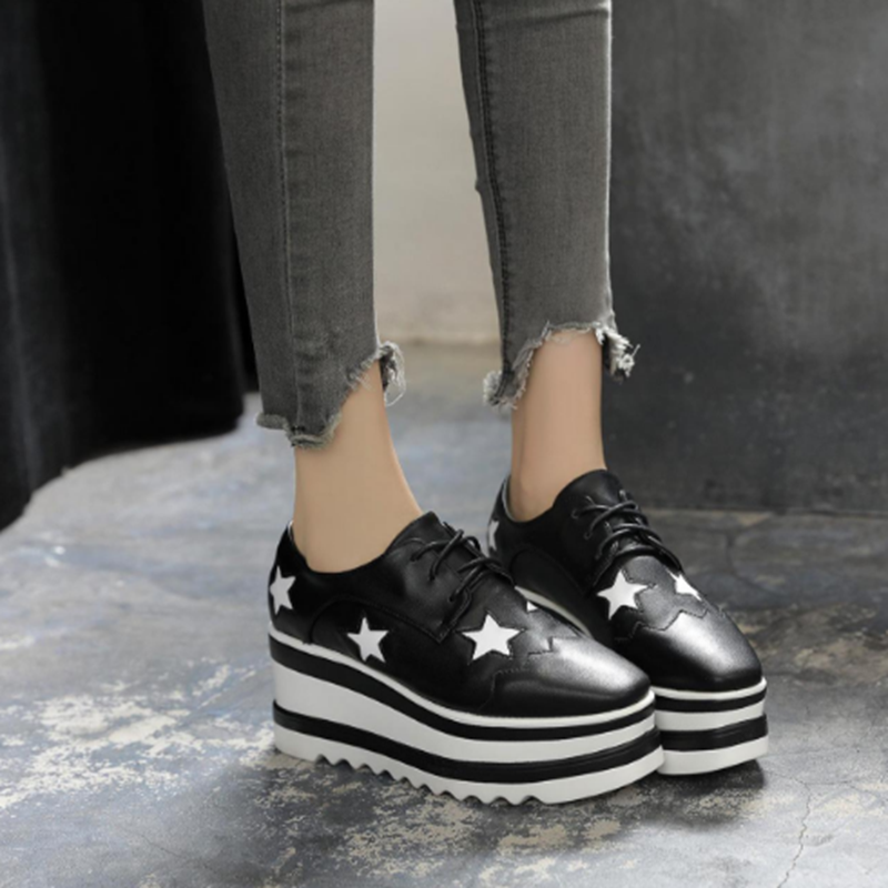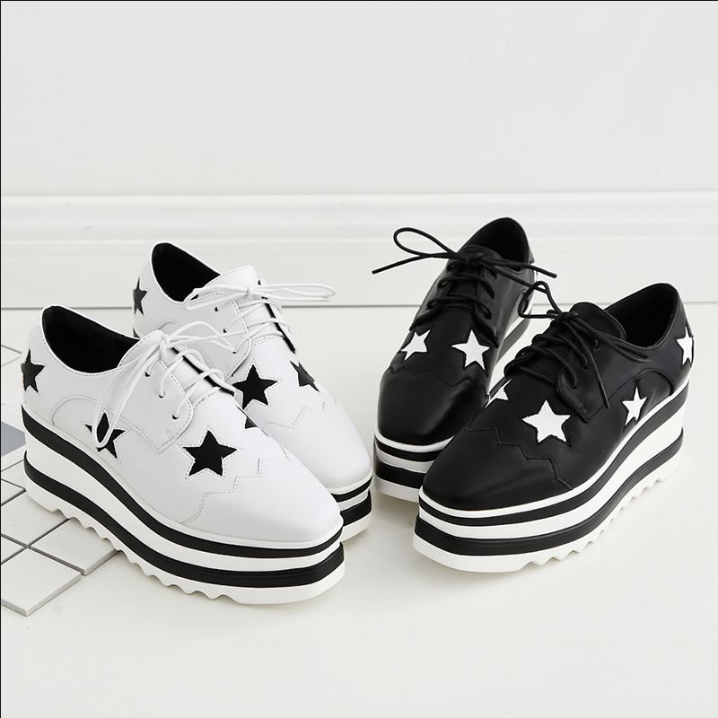 Striped bottom star platform shoes women's 2021 new thick bottom wild Korean version of the British spring square toe shoes casual shoes