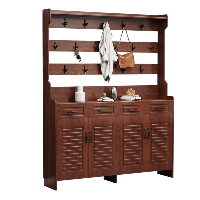 Solid Wood Color Shoes Cabinet Clotheshorse Clothes Hanger Combined Door Hall Cabinet Minima Modern Large Capacity Genguan Doorway Home Shoe Cabinet