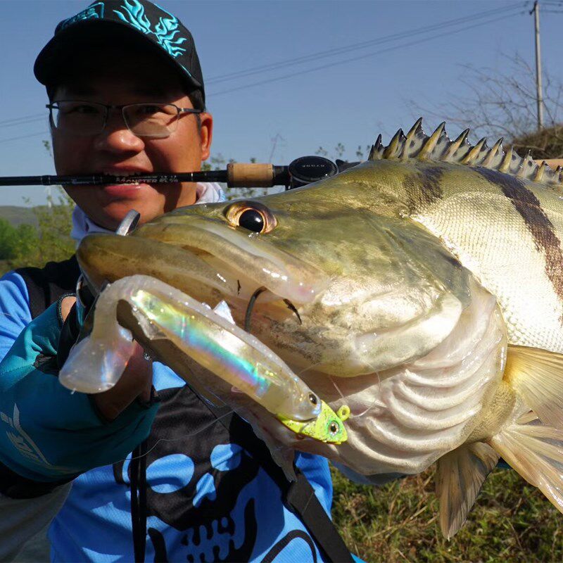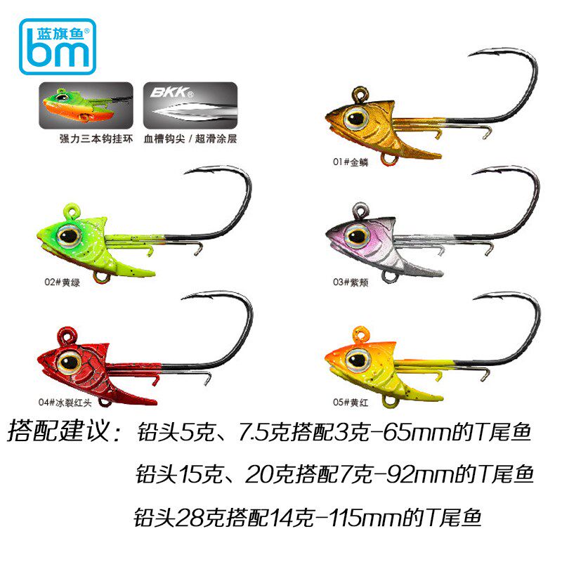 2018 new brand blue flag fish shaped lead head hook bully with childish fish head bionic false bait teething mandarin fish sea bass bait