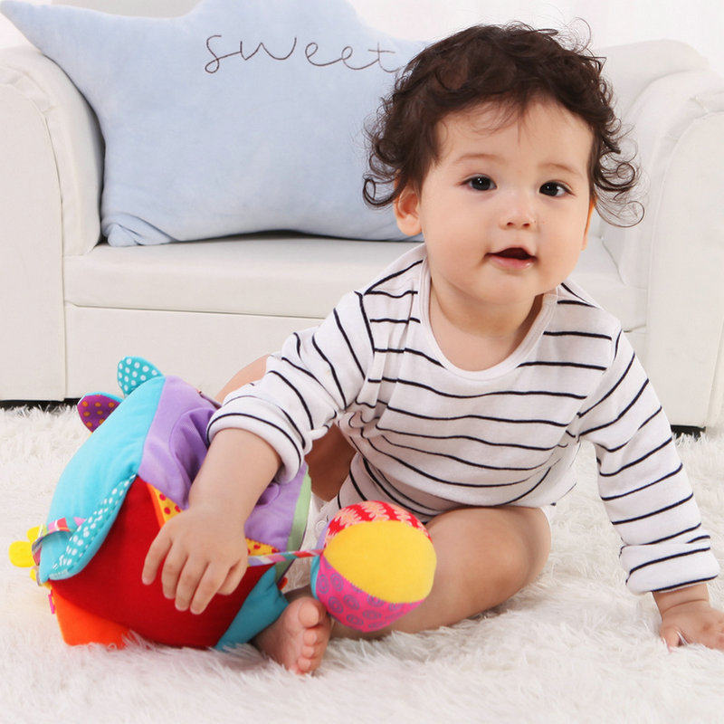 Baby hand grip ball rocking bell roll with buzz ball 0-1 Baby early to teach Puzzle Appeasement Toy Plush Bites Solid Teeth