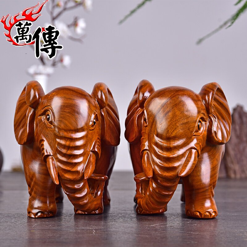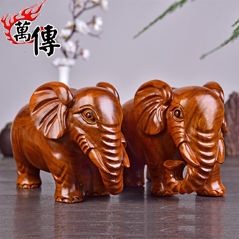 Hua Li solid wood carving elephant decoration a pair of home living room decorations mahogany crafts business gifts