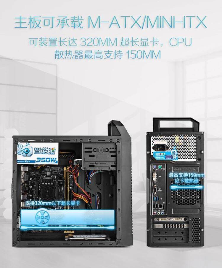 Jinhetian computer mainframe empty box portable M-ATX small and medium motherboard desktop keyhole game chassis power supply
