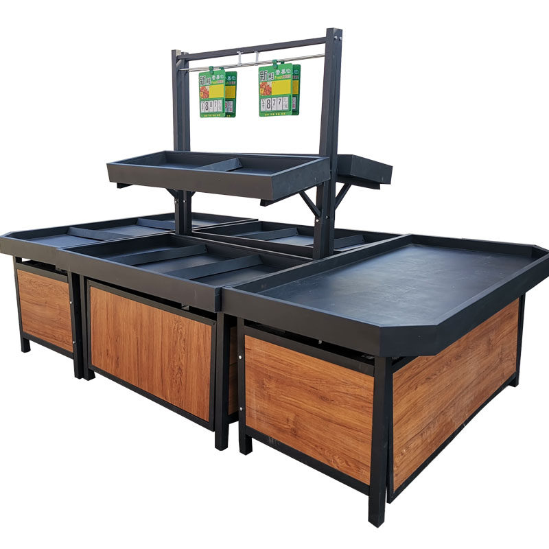 Supermarket High-end Fruit Rack Show Racks Multifunction Water Fruit Shop Racks New Creative Steel Wood Vegetable Shelving Shelves