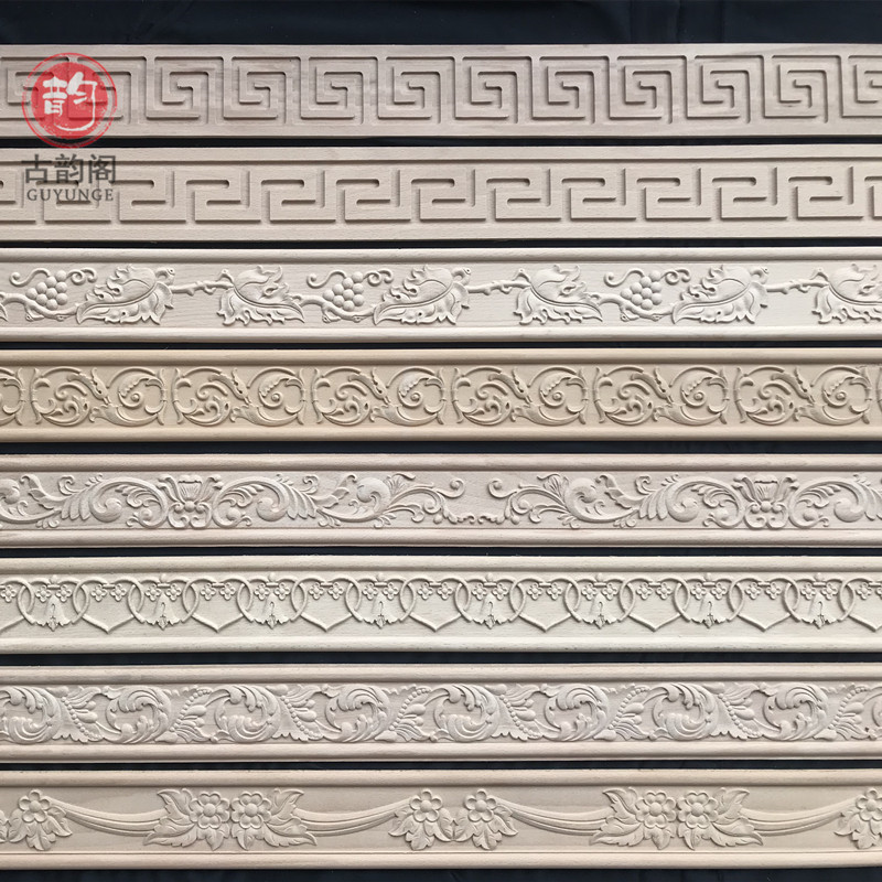 Dongyang wood carving Chinese decoration Solid wood lines Suspended ceiling ceiling cable TV background wall decorative lattice partition