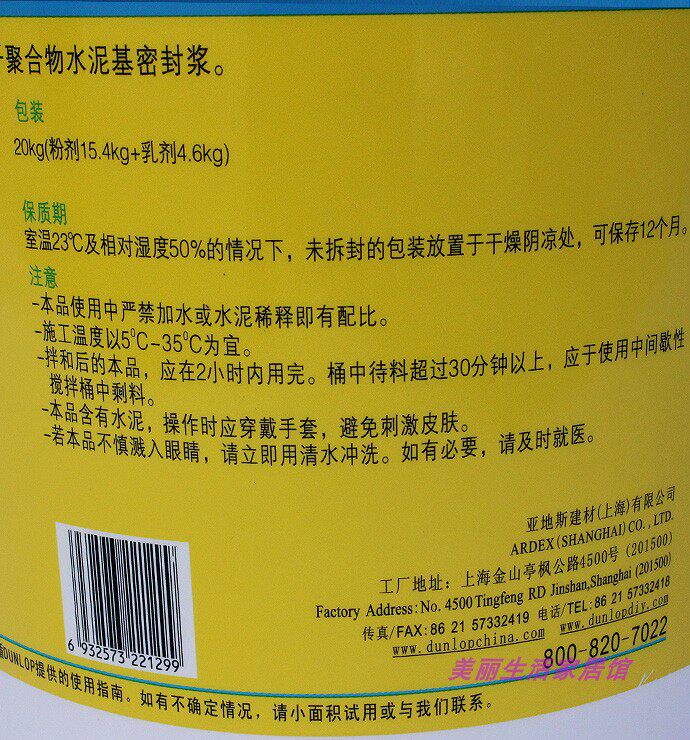 Dunlop 1 1 Flexible water resistant slurry bathroom kitchen balcony humidity section double component blue grey 20kG