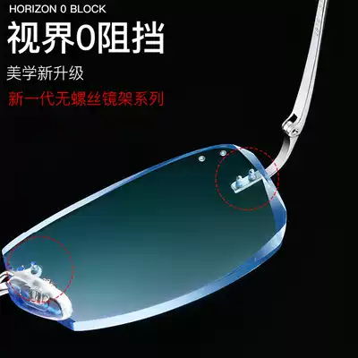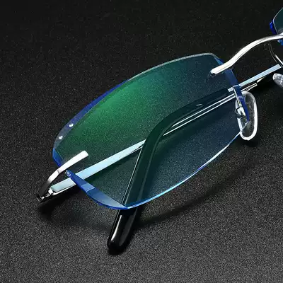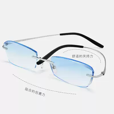 Pure titanium screw-free myopia glasses men's ultra-light big face discoloration anti-blue rimless glasses frame scatterer Blue Gray