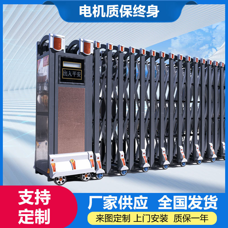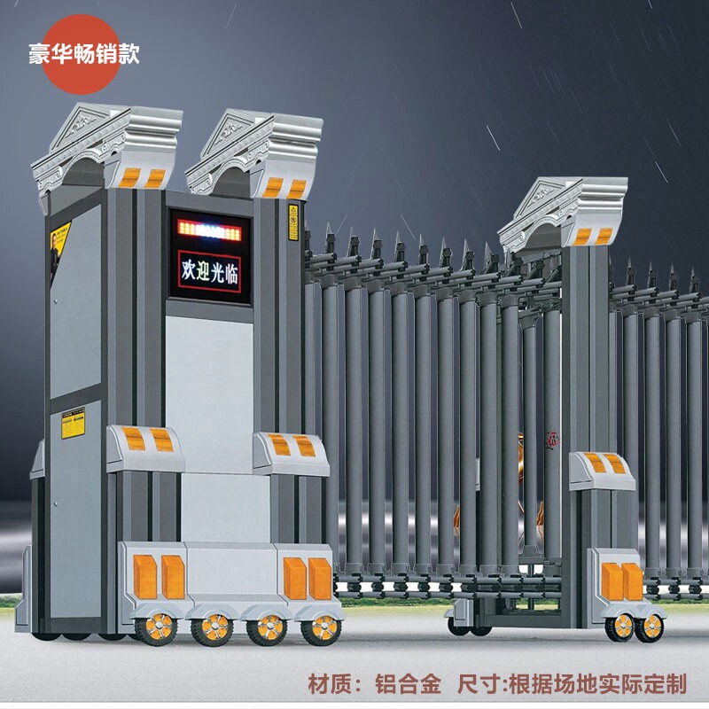 Electric telescopic door School factory site automatic door courtyard folding stainless steel section sliding door sealing plate suspension gate