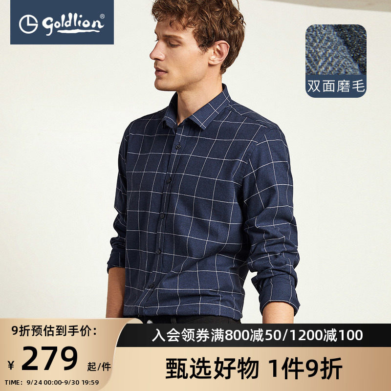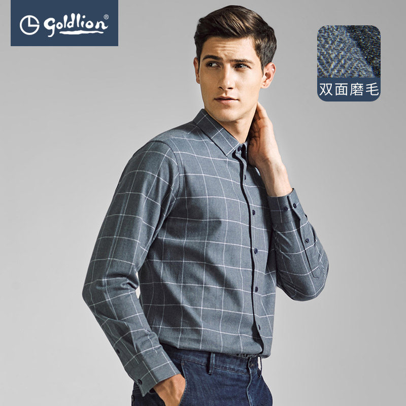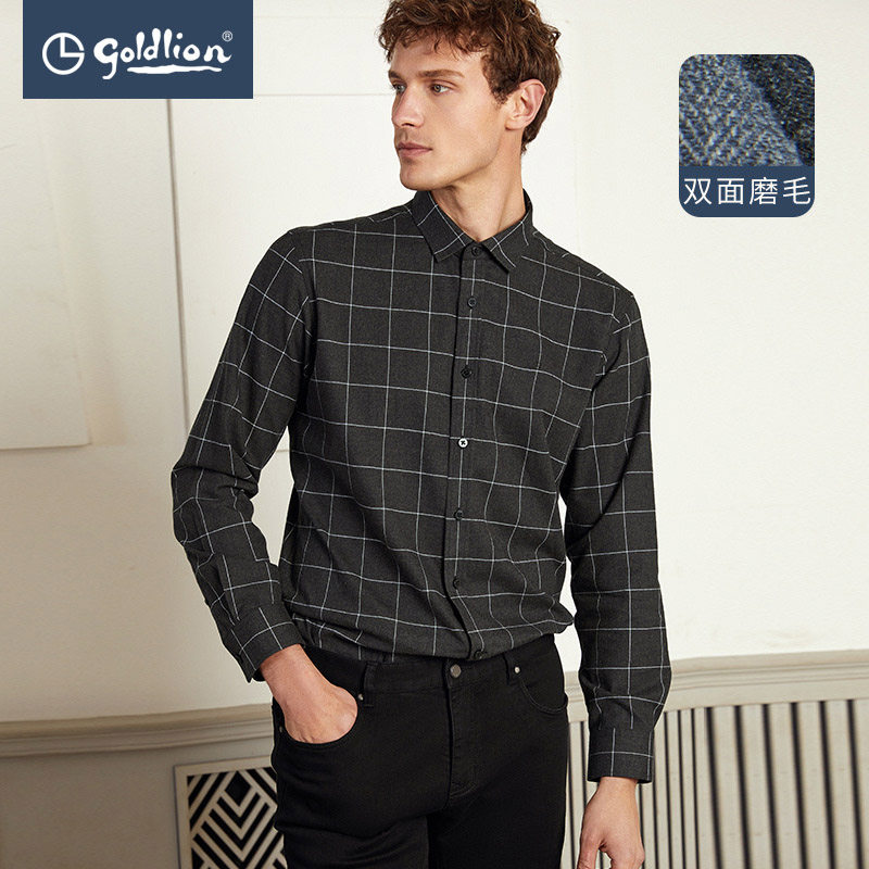 Jinlilai autumn and winter double-sided brushed shirt long-sleeved men's pure cotton plus velvet casual plaid jacket shirt men