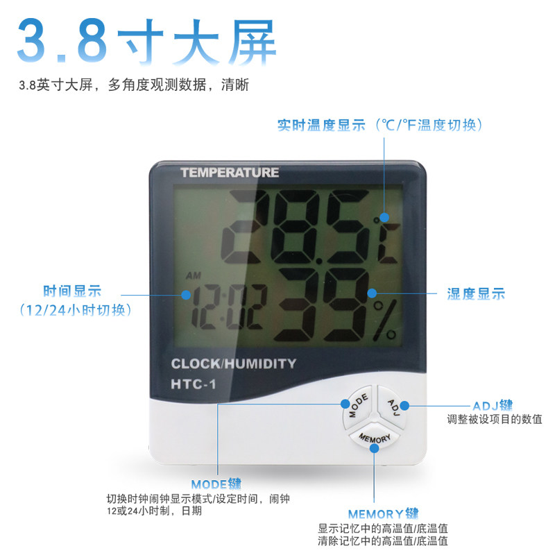 HTC-2 number of display temperature and humidity meter HTC-1 thermometer large screen digital display electronic alarm clock thermometer hygrometer