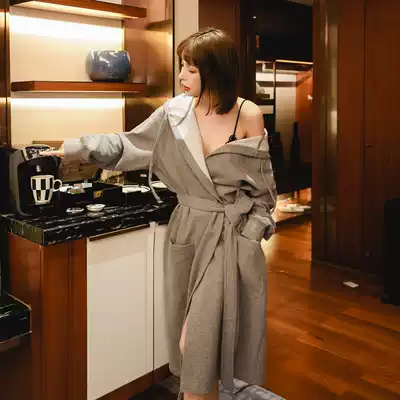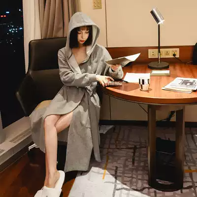 Sexy ultra-long net red nightgown female couple bathrobe male personality tide pajamas Autumn and winter pure cotton ins Korean spring and summer