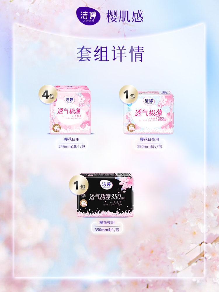 Jieting breathable ultra-thin cherry blossom cotton soft sanitary napkin aunt towel day and night full-cycle combination official flagship store A