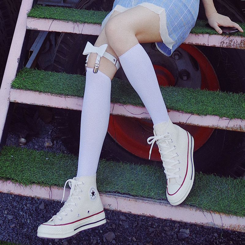 Black not over the knee, black bow sock button light purple not over the knee deep purple bow white not over the knee white bow sock button wine red not over the knee red bow sock button black not over the knee black double