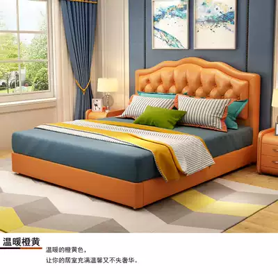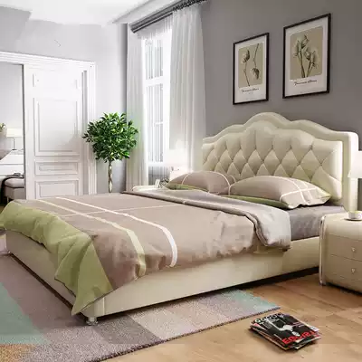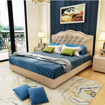 American leather art pull buckle headboard simple solid wood soft bag bed headboard back double master bedroom hotel bed screen set