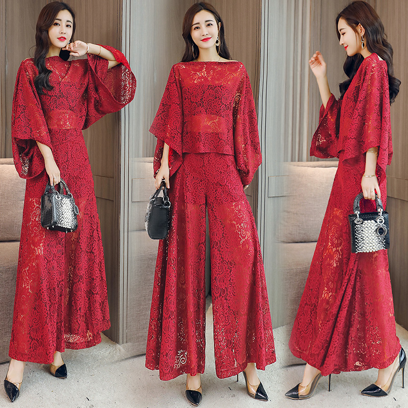 Temperament celebrity wide-leg skirt suit female 2022 summer new Korean version of the Western style one-shoulder suit two-piece suit