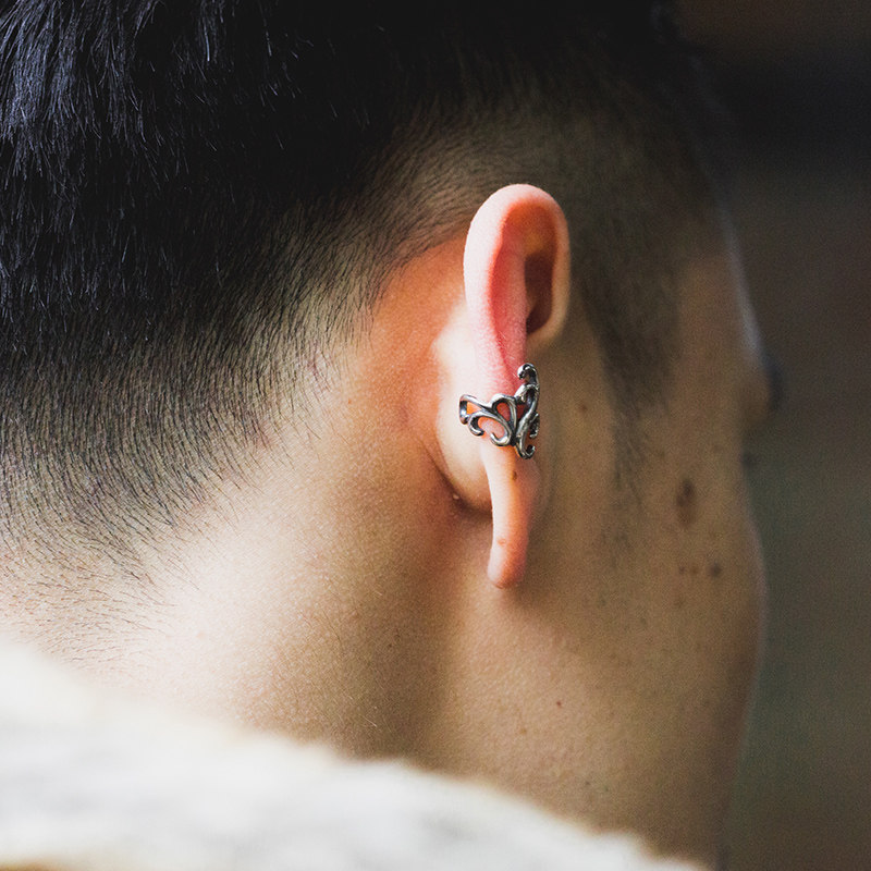 ruibeila ear bone clip male earless piercing tide men and women hip hop cool handsome Thai silver retro personality flower vine stud earrings single