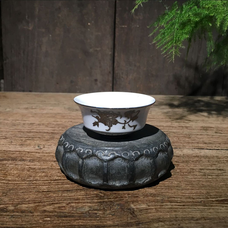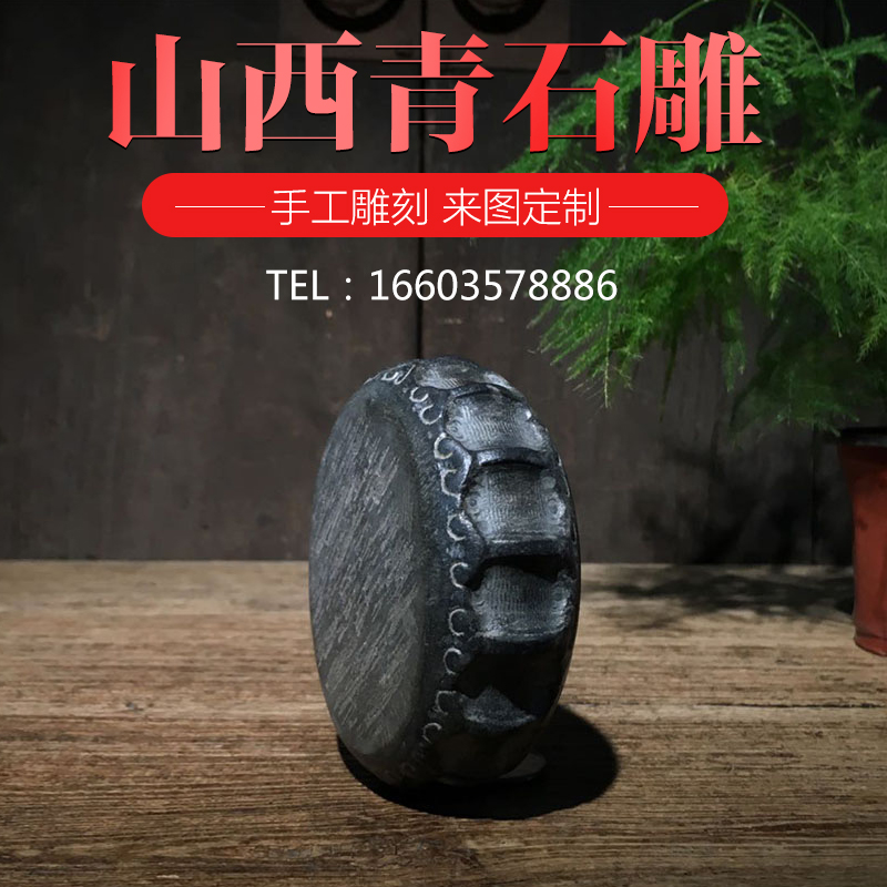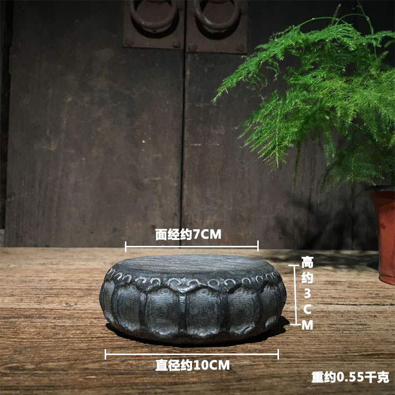 Antique stone carving Shanxi bluestone carving heart-to-heart peach heart small stone drum retro coaster pot pad play Wenwan collection
