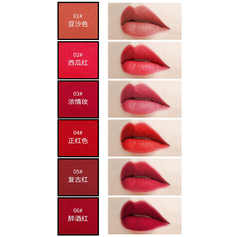 01 Bean Sand Color 02 Watermelon Red 03 Intense Love 04 positive red 05 Retro red 06 Drunk Red