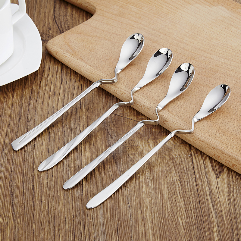 Stainless steel coffee spoon stirring spoon dessert spoon creative twisted spoon hanging cup spoon milk tea spoon curved spoon
