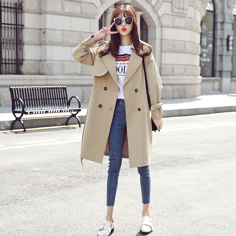 Windbreaker women's mid-length version small Korean version loose temperament 2022 new autumn khaki versatile coat coat
