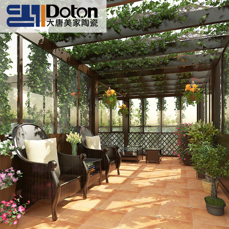 American field garden imitation ancient brick 400X400 kitchen make-up room anti-slip floor tile balcony floor brick with corner flower retro