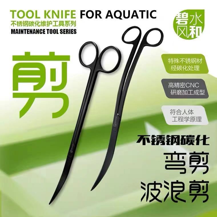Biewater wind and carbon water grass tool suit fish tank long stainless steel tweezers clip flat sand shovel straight bending wave cut frame