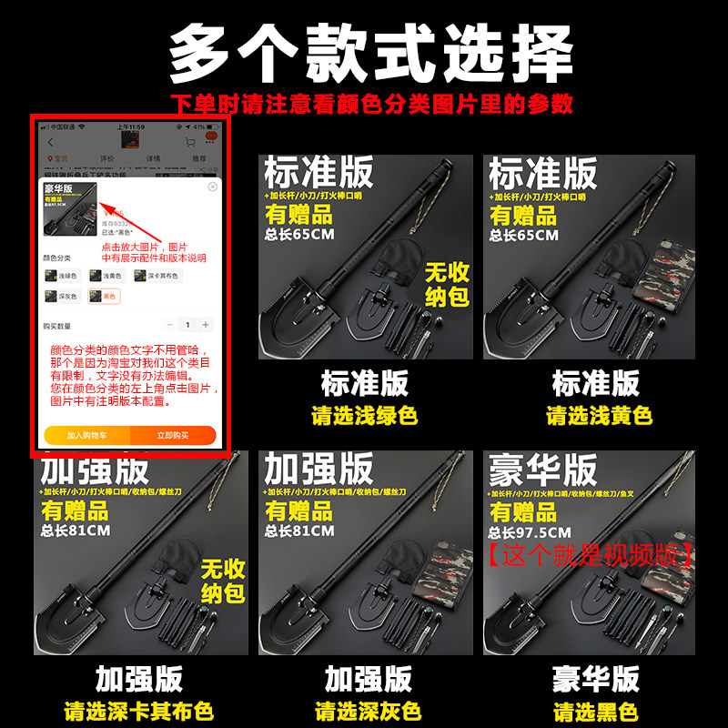 Donkey German manganese steel poop style field off-road caravan army shovel multifunction outdoor soldier shovel anti-body equipment
