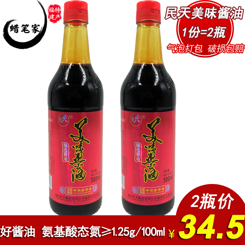 Fujian specialty seasoning Condiment Mintian delicious soy sauce 500ml*2 bottles brewing soy sauce childhood taste