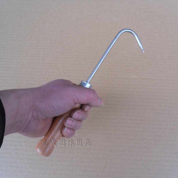 Stainless Steel Single Claw Root Hook Pine Soil Tool Root Hook Gardening Potted Bonsai Conserve Pine Earth Hook Wood Handle Single Claw Hook