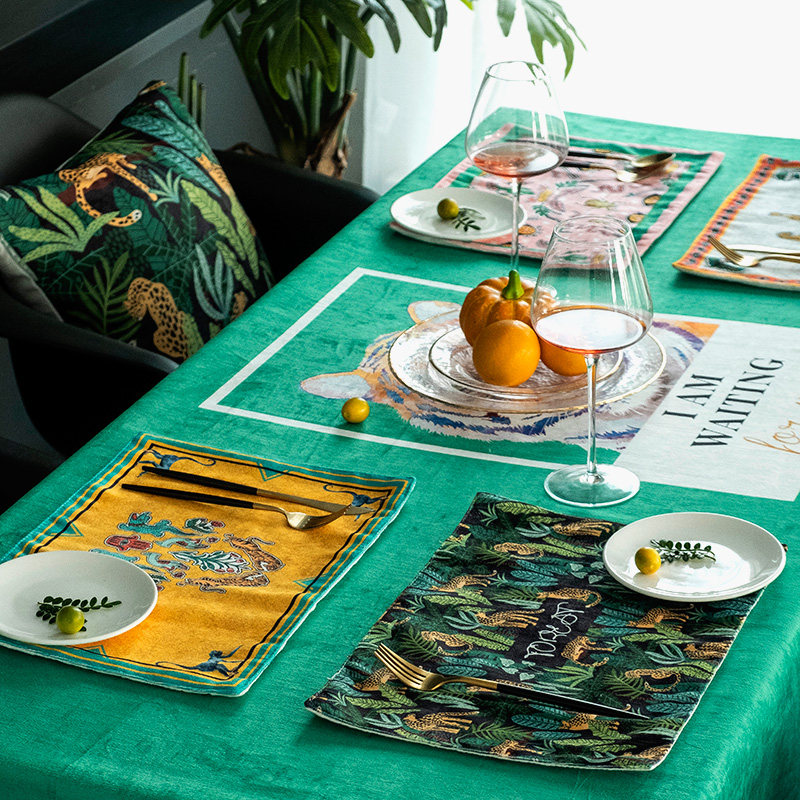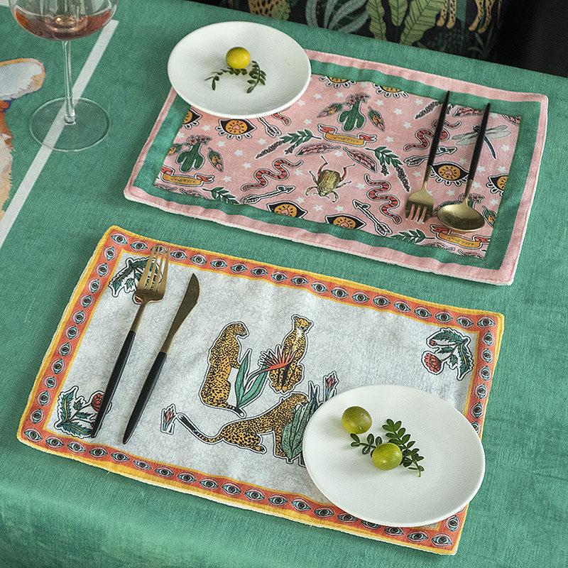 American trendy placemats rectangular waterproof dining table mats fabric insulation mats western placemats double-layer thickened coasters bowl mats