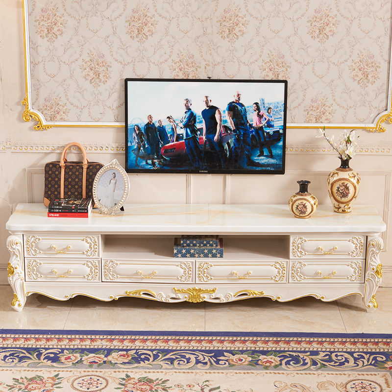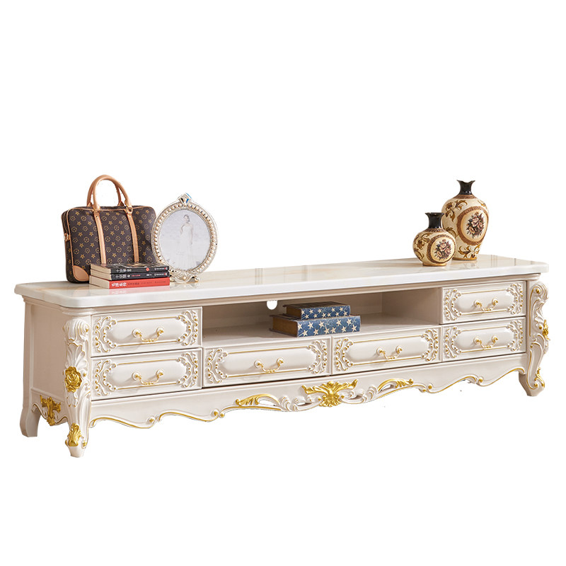 Marble TV cabinet European Living room TV cabinet Tea combination modern living room full solid wood double deck TV cabinet