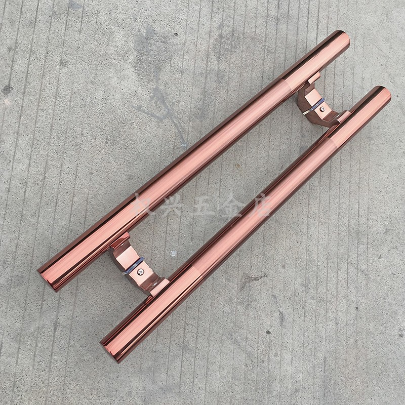 Thickened Stainless Steel Rose Gold Glass Door Handle Horse Hooded Feet Big Handle With Frame Door Handle Diagonal Foot Side Mount Handle-Taobao