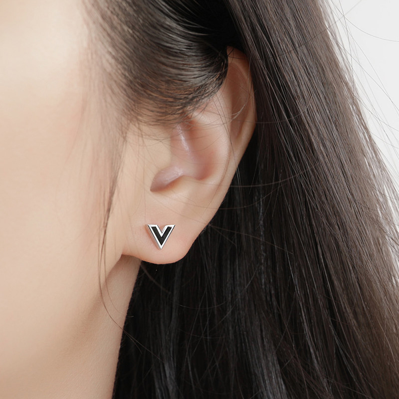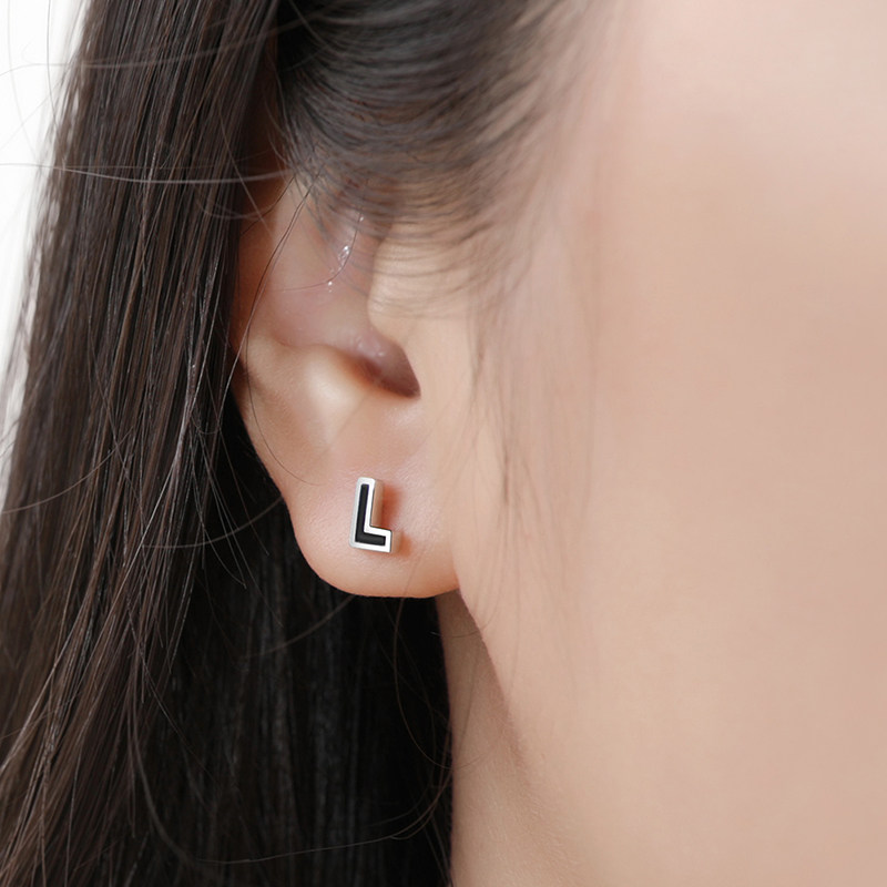 2019 new trendy ear bone small ear needle female screw buckle black drop glaze s925 sterling silver small earring female small and creative