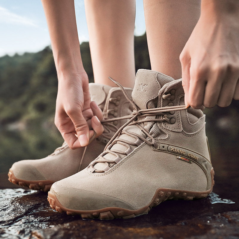 Outdoor high - cylinder mountaineering shoes female shoes leather waterproof anti - slip wear climbing shoes hiking shoes men's shoes winter large size
