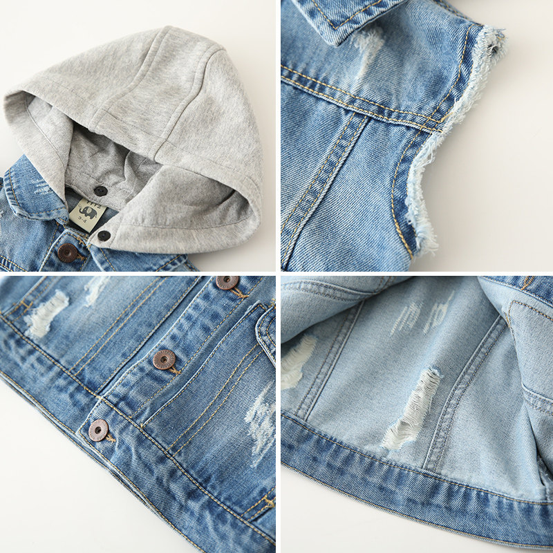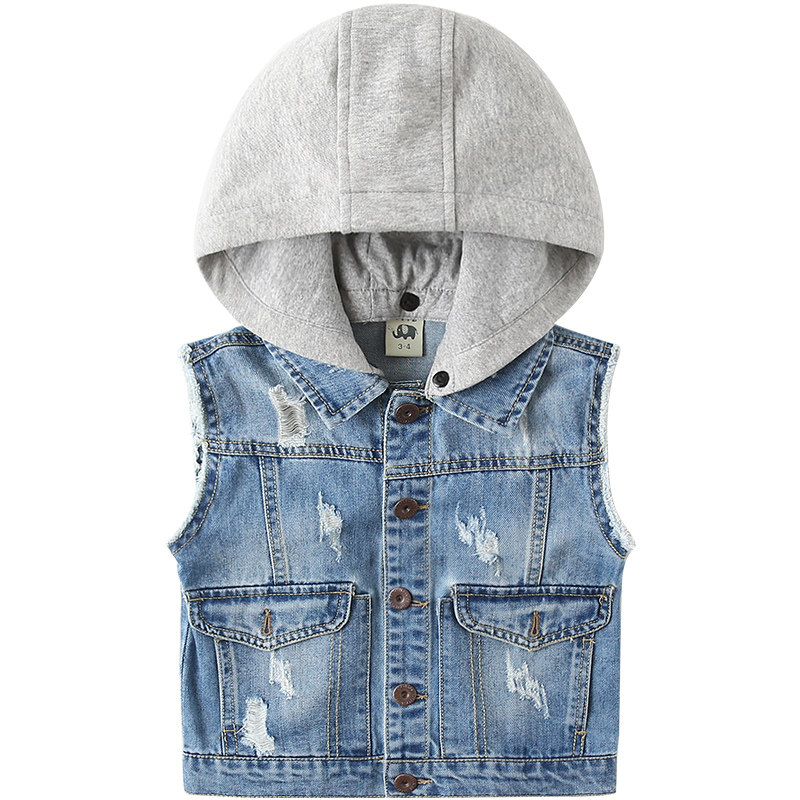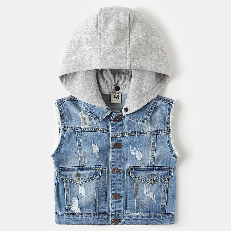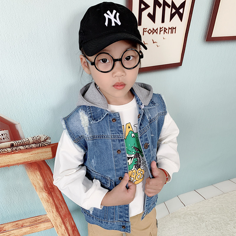 Fashion hooded children's denim vest Korean version of the tide baby vest spring and autumn new children's clothing boys horse clip jacket