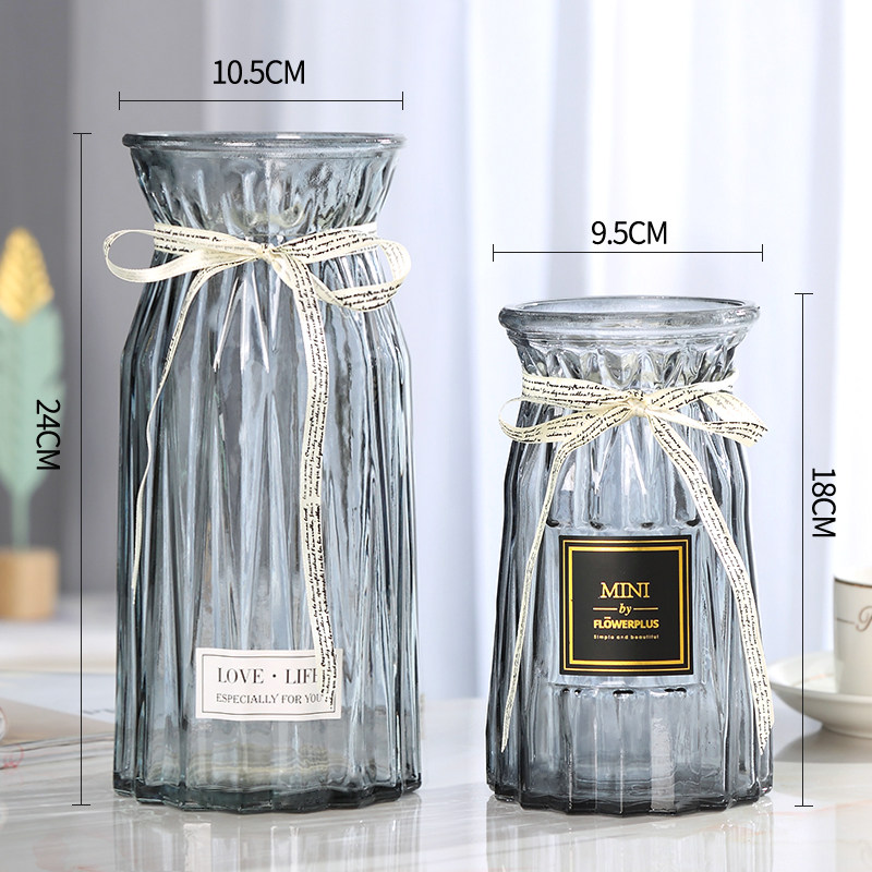 (Two-piece set) European-style glass vase transparent color hydroponic plant vase living room decorative ornaments vase arrangement vase
