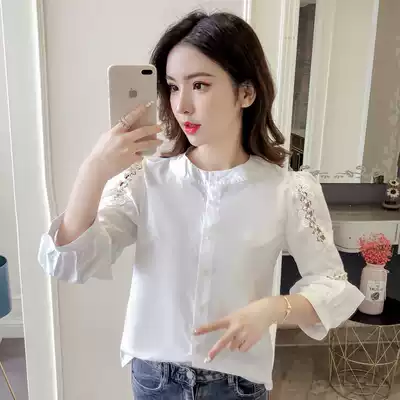 Spring and autumn 2021 New Korean version of net red temperament playful light mature foreign style shirt fashion casual white shirt Women