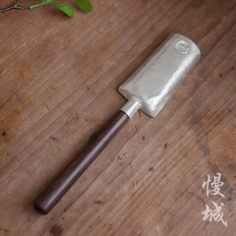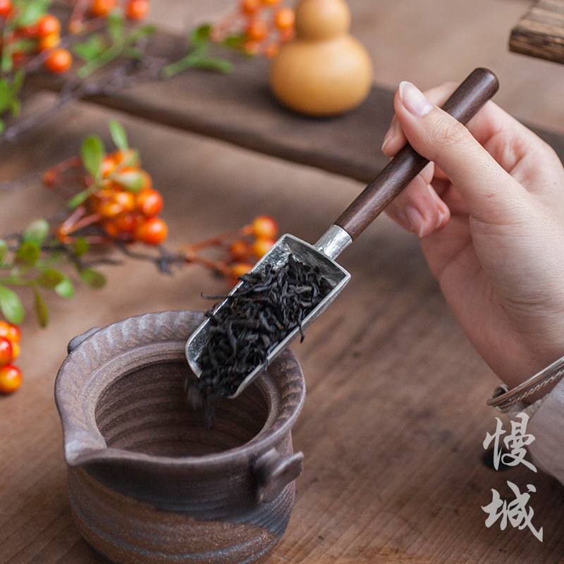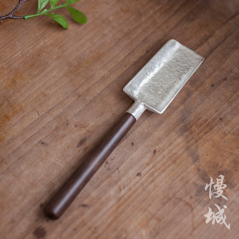 Tin tea spoon, tea shovel, tea spoon, small teaspoon, ebony long handle, household tea ceremony parts, tea set accessories, tea measuring spoon