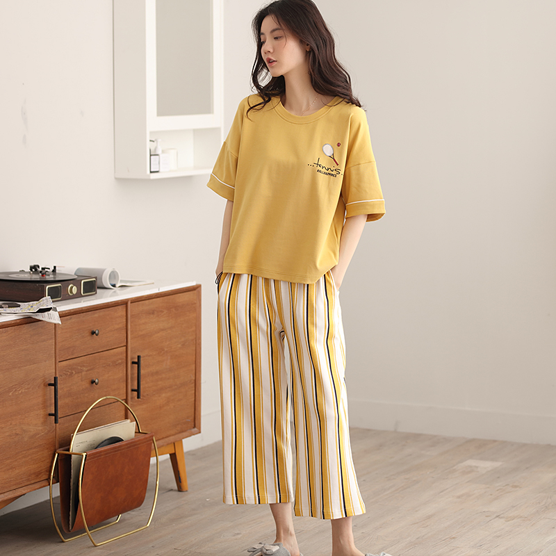 Women's summer pajamas pure cotton thin section short-sleeved spring and autumn summer women's cropped pants large size fat MM home service two-piece suit